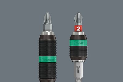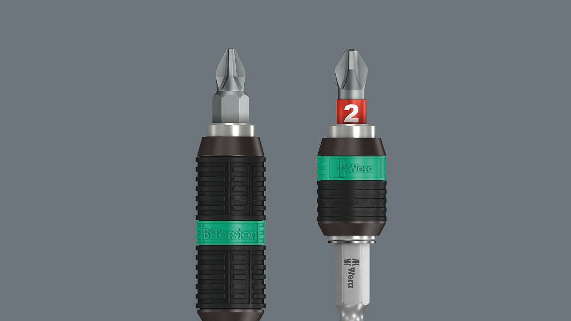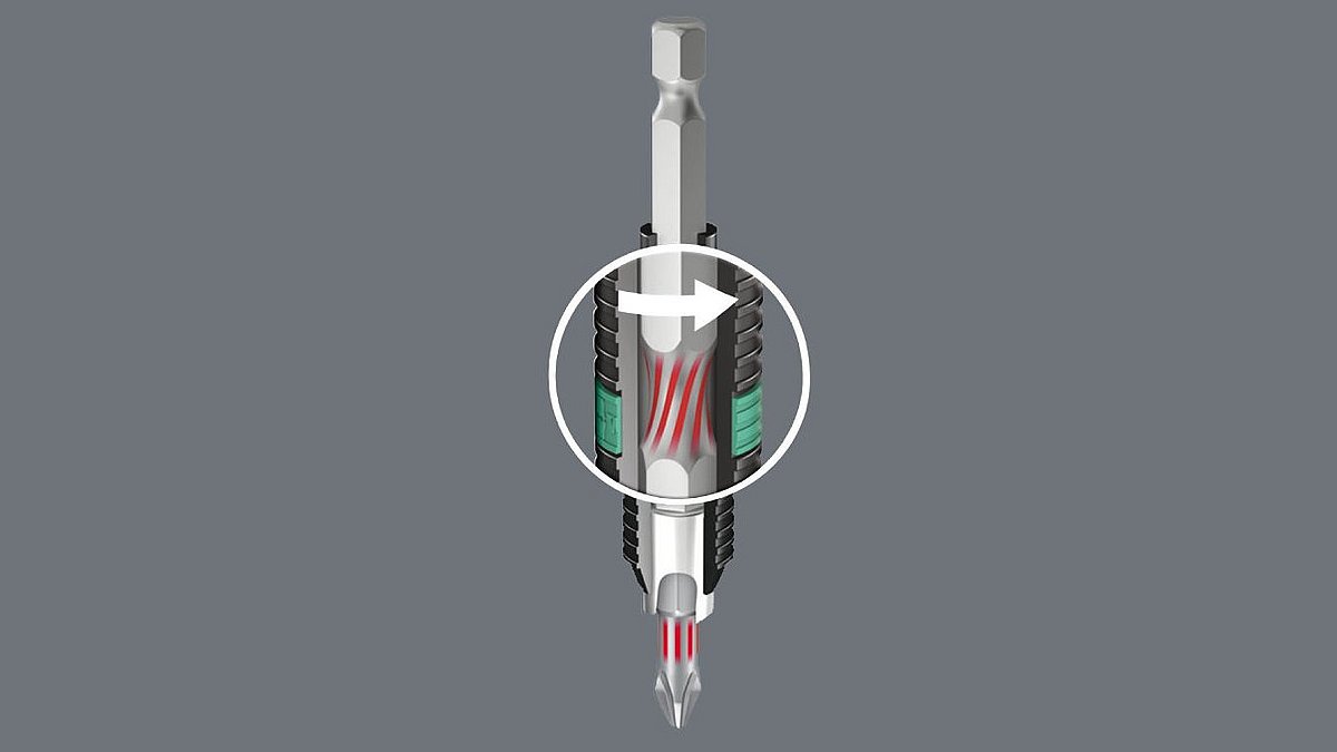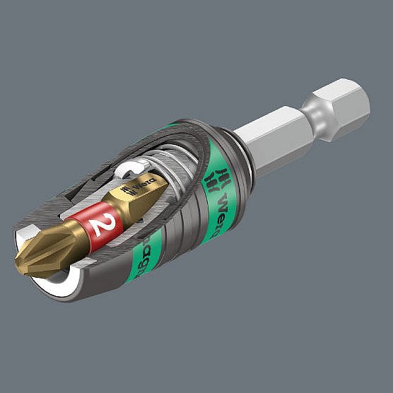 Wera's Rapidaptor technology allows bits to be attached without any need to actuate the sleeve. Once pushed in the bit is automatically locked in creating a secure wobble free hold. The removal of the bit is simple, just by pushing the sleeve forward. This enables rapid bit change with just one hand – making life for the operators easier and reducing downtime. A free turning sleeve also allows for the thread to be started by hand reducing the likelihood of cross threading leading to scrap components.