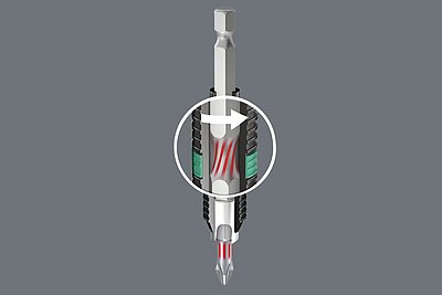 For optimum results the bit should be used with our 897/4 R BiTorsion holder. BiTorsion holders by Wera have a torsion spring that absorbs low peak loads during screwdriving jobs. The combined use with BiTorsion bits and their torsion zones extends the service life of the tool considerably. These torsion zones will even increase the service life of the standard Z bits on site.