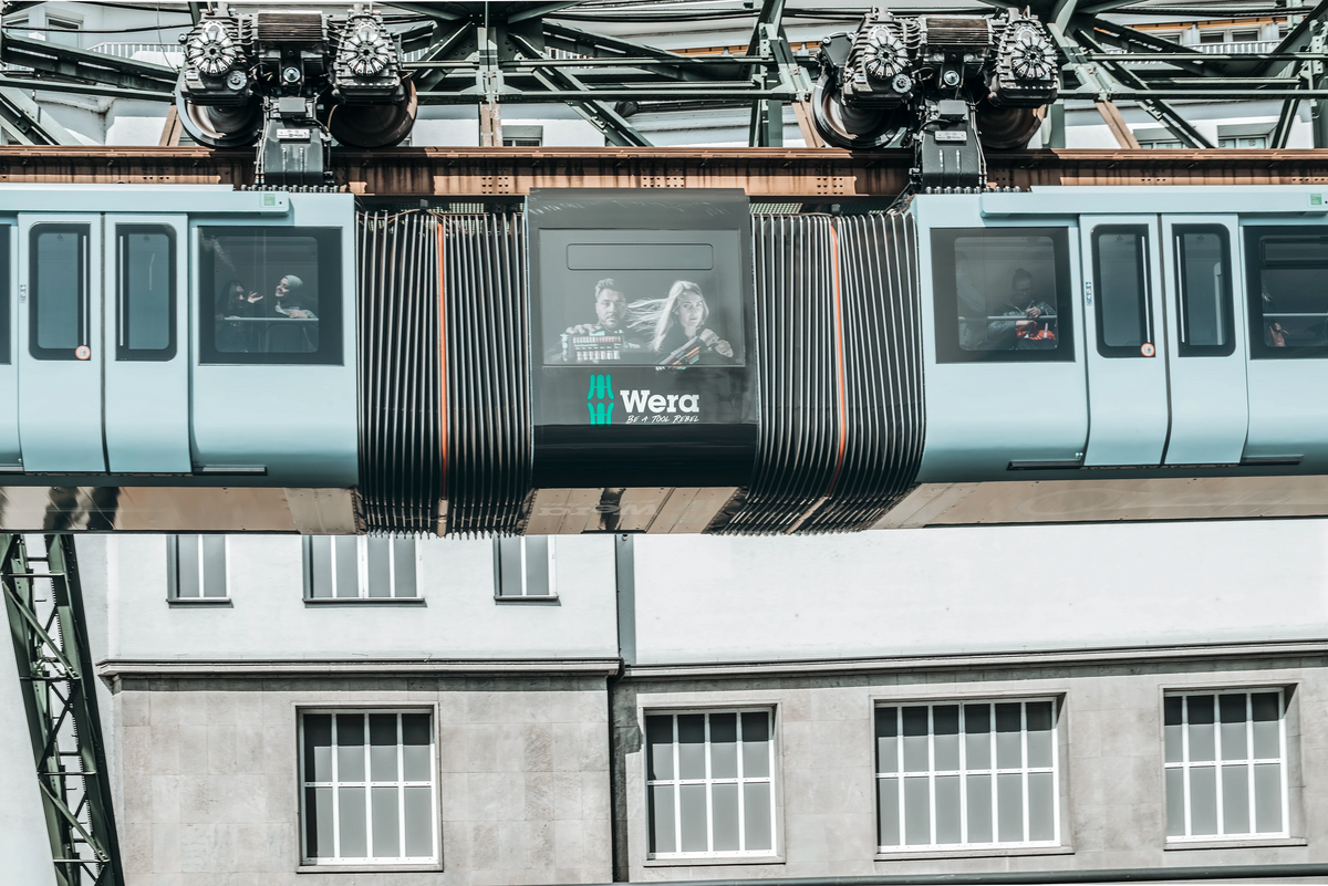 The suspension railway is the heart of Wuppertal – and now also an ambassador for strong brand values. Right in the cityscape, visible to thousands every day, the Wera suspension railway combines engineering excellence with urban creativity. It shows that innovation doesn’t have to be quiet. On the contrary: it is free to float boldly through the city.