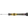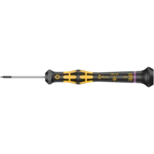 High quality Wera Micro screwdriver for precision mechanical jobs. Rapid twisting results from fixing the hand on the head and using the fast-turning zone just below. This makes time-consuming grip adjustments unnecessary. Power zones with integrated soft sections ensure the transfer of high loosening and tightening torque; a precision zone for the right rotation angle during fine adjustment work. The Black Point tip offers optimised corrosion protection and an exact fit.The electric surface resistance of the Wera ESD material is ≤ 109 ohm. This securely protects components against electrostatic energy and associated damage. Take it easy tool finder with colour coding according to profiles and size stamp - for simple and rapid accessing of the required tool.