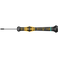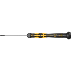 ESD-safe Micro screwdriver. Dependable protection against electrostatic energy and associated damage. Rapid twisting results from fixing the hand on the head and using the fast-turning zone just below. This makes time-consuming grip adjustments unnecessary. Power zones with integrated soft sections ensure the transfer of high loosening and tightening torque; a precision zone for the right rotation angle during fine adjustment work. The Black Point tip offers optimised corrosion protection and an exact fit. Take it easy tool finder with colour coding according to profiles and size stamp - for simple and rapid accessing of the required tool.