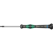 High quality Wera Micro screwdriver for precision mechanical work. Ballpoint profile: the ballpoint drive profile means that it is possible to swivel the tool axis away from the screwdriving axis, thus enabling "round the corner" screwdriving. Rapid twisting is possible by fixing the hand on the twist cap and using the fast-turning zone just below it. This makes time-consuming grip adjustments unnecessary. Power zone with integrated soft zones ensure the transfer of higher tightening and loosening torque. Precision zone for the right angle for adjustment work. The Wera Black Point tip offers high corrosion protection and an exact fit. Take it easy tool finder with colour coding according to profiles and size stamp - for simple and rapid accessing of the required tool.