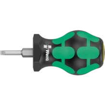 Particularly small screwdriver with short blade for hard-to-reach areas. The 2-component Kraftform handle with its handy combination of hard and soft zones allows for a firm grip and precise working. The blades have all the advantages of the Wera bit technology. Special surface treatment of the blades for high corrosion protection and optimum fitting accuracy in the screw. The hexagon anti-roll protection avoids screwdrivers from rolling away annoyingly at the workplace.