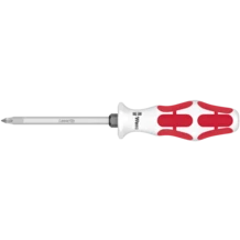 High quality Kraftform Plus screwdriver by Wera. Hard gripping zones for high working speeds whereas soft zones ensure high torque transfer for fast and low-fatigue working. The tips of Wera Lasertip screwdrivers are microscopically roughened by means of laser beams. This rough surface literally bites into the head of the screw. Any unintentional slipping out is therefore a thing of the past. More torque can be transferred with the help of an open-end or ring spanner applied to the hexagonal blade and integrated bolster. Take it easy tool finder with colour coding according to profiles and size stamp - for simple and rapid accessing of the required tool. The hexagonal non-roll feature prevents any rolling away at the workplace.