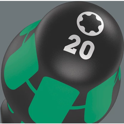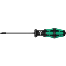 High quality Kraftform Plus screwdriver by Wera. TORX PLUS® profile: in comparison to "normal" TORX® profiles, the enlargement of the 6 torque-transferring flanks between the tool and screw is implemented by using an elliptical and not circular profile design. This means that the power applied when fastening is spread across a larger surface area. Higher torque is transferred and the service life of the screw and tool is also enhanced. Multi-component Kraftform handle for rapid and convenient working. Kraftform Plus: hard gripping zones for high working speeds whereas soft zones ensure high torque transfer. The Wera Black Point tip offers a perfect fit and optimised corrosion protection. The hexagonal non-roll feature prevents any annoying rolling away at the workplace. Handle markings for simplified finding and sorting of the tools.
