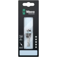 The free-turning sleeve allows screw steadying at the start of the screwdriving process. This makes it easier to apply the tool to the screw and prevents slipping. It can also be used as a short extension for ¼" applications e.g. in combination with the Wera Zyklop Ratchets.