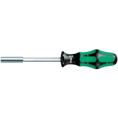 High quality bit holder with flexible shaft by Wera. Multi-component Kraftform handle for high working speeds and particularly ergonomic screwdriving. Kraftform Plus: hard gripping zones for high working speeds whereas soft zones ensure high torque transfer. Comes with quick-release chuck for rapid bit change and hexagonal anti-roll feature that prevents any rolling away. Suitable for the insertion of bits with ¼" hexagon head drive as per DIN ISO 1173-C 6.3.