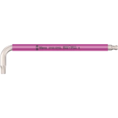 Premium stainless steel Wera L-keys for hexagonal socket screws. Stainless steel prevents transmission of extraneous rust. The Hex-Plus profile offers larger contact surfaces in the screw head. The notch effect is reduced to a minimum and the destruction of the screw is nearly eliminated. With hexagonal ball tip at the long arm: The ball-shaped tip profiles enable the tool shaft to be moved and pivoted relative to the screw axis which allows screwdriving "around the corner". From size 3.0 with holding function for hexagonal socket screws on the long arm. Take it easy tool finder with colour coding by size. In a nearly wear-free L-key clip.