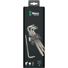 High quality L-key set out of stainless steel for hexagon socket screws by Wera. Stainless steel prevents the transfer of extraneous rust. The Hex-Plus profile offers a greater contact surface in the head of the screw. The notching effect is therefore reduced to a minimum and damage to the screw head more or less eliminated. Come with hex ballpoint on the long arm: the ballpoint drive profile means that it is possible to swivel the tool axis away from the screwdriving axis, thus enabling "round the corner" screwdriving. In an almost wear-free L-key clip fastener.