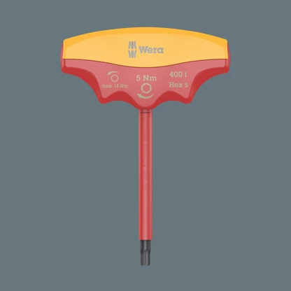 - Insulated, individually tested VDE T-handle torque indicator for safe working up to 1,000V