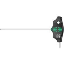 T-handle screwdriver: The ideal handle shape allows the transmission of particularly high tightening and loosening moments. The ergonomic shape of the handle fills the ball of the hand well, the fingers lie securely in the softly rounded recessed grips. The whole hand comes into contact with the handle and friction losses between hand and handle are avoided. With holding function to hold the hexagonal socket screw securely on the tool. Special surface treatment for high corrosion protection and optimal fitting accuracy in the screw.