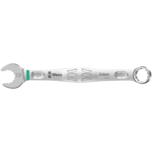As installation spaces become increasingly confined, tools are necessary that enable users to work successfully even in such situations. Narrow spaces require additional placement points of the tool. Can spanners be modified so that the placement possibilities of the tool increase? The combination of the 7.5° offset open end and the double hexagon geometry doubles the placement points. A repeated 180° turn of the wrench around the longitudinal axis during screwdriving provides four placement possibilities, and bolts or screw heads can be engaged every 15°. The Joker 6003 with its smart open end geometry significantly expands the range of uses in confined spaces. The Joker 6003 will automatically find the respective placement point after every turn. The slim yet robust ring side is tilted by 15° to the tool axis. The high-quality surface treatment achieves a high and long-lasting corrosion protection. With tool finder Take it easy: colour coding by size.