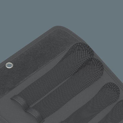 - Textile folding pouch made of robust material, protects surfaces from damage, can be docked onto the Wera 2go system