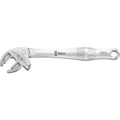 Many users wish to have a universal screwdriving tool with the widest possible range of applications. It should be a single tool for multiple metric and imperial dimensions. It should automatically adjust to the different screw sizes. It should be safe to grab without damaging anything and should allow for high working speeds. With its continuous and parallel jaws the Joker 6004 replaces several single spanner sizes. The required size is automatically and continuously set when attaching the tool to the hexagon bolt or screw. The integrated lever mechanism securely clamps the hexagon screw or bolt between the jaws, which significantly reduces the risk of slippage or damage. The ratchet feature ensures fast and consistent screwdriving without removing the tool. By using the corner-width rectangular prisms, a back-pivoting angle of only 30° can be achieved. The single-arm design, in conjunction with the ratchet feature and the corner-width prism, makes it possible to work even in confined spaces. The adjustable Joker 6004 is the universal screwdriving tool. Self-setting. Gripping. Spanning.