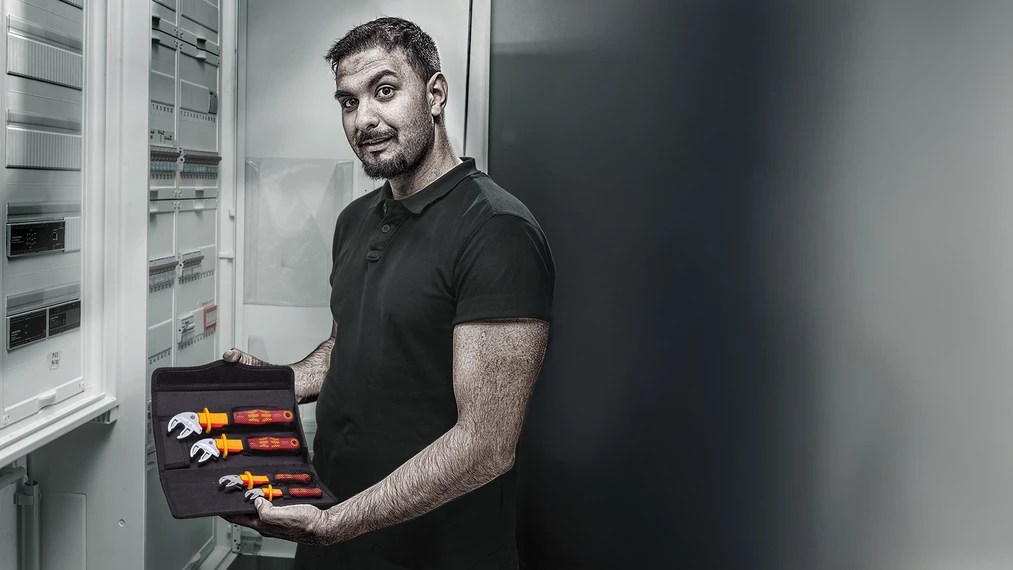 - Individually tested tools with insulated handles for safe working up to 1,000 volt, with anti-slip protection and sliding function for contactless and safe opening of the non-insulated jaws