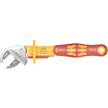 Individually tested tools as per IEC 60900 at 10,000 V for safe working at the approved voltage of 1,000 V. The adjustable VDE spanner continuously and automatically grips all hexagonal sizes in the indicated range of dimensions - metric and imperial. The integrated lever mechanism securely clamps the hexagon screw or bolt between the jaws, which significantly reduces the risk of slippage or damage. The ratchet feature ensures fast and consistent screwdriving without removing the tool. By using the corner-width rectangular prisms, a return angle of only 30° can be achieved. The single-arm design, in conjunction with the ratchet feature and the corner-width prism, makes it possible to work even in confined spaces. The adjustable Joker 6004 VDE has a naturally comfortable handle thanks to the 2-component plastic insulation. Safety is increased by the anti-slip protection at the front end of the handle. The sliding function offers contactless and safe opening of the non-insulated jaws, thereby providing extra protection.