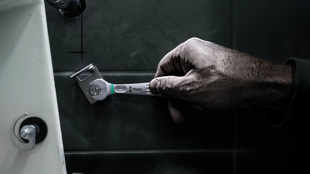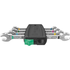 As installation spaces become increasingly confined, it is necessary that tools enable users to work successfully even in such situations. Narrow spaces require additional placement points of the tool. Can spanners be modified to increase the placement possibilities of the tool? The combination of the 7.5° offset open end and the double hexagon geometry doubles the placement points. A repeated 180° turn of the wrench around the longitudinal axis during screwdriving provides four placement possibilities, and bolts or screw heads can be engaged every 15°. The Joker 6005 with its smart open end geometry significantly expands the range of uses in confined spaces. The Joker 6005 will automatically find the respective placement point after every turn. The high-quality surface treatment achieves a high and long-lasting corrosion protection. With Take it easy tool finder: Colour coding by size.
