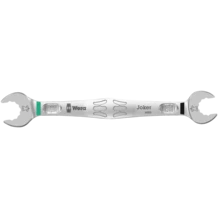 The Joker 6005 double open end wrench with its special open end design - a 7.5° offset open end and double hexagon geometry - doubles the placement points at a repeated 180° rotation of the wrench around the longitudinal axis. Bolts and screw heads can be engaged every 15°. The Joker 6005 will automatically find the respective placement point after every turn.