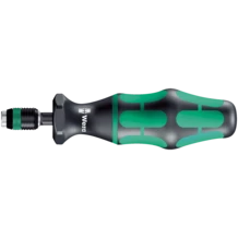 Wera torque screwdrivers. With a factory pre-set torque value set to the smallest scale value. For all applications, where the same constant torque and repeat accuracy are required. The torque can be changed with an extra tool within the measuring range (re-calibration kit can be ordered with the code number 05137001001). Afterwards you can check the set value using an off-the-shelf torque tester. Unlimited loosening torque for slackening stuck screws. Rapidaptor quick-release technology for rapid bit changes. Suitable for bits with a 1/4" external hexagon drive as per DIN ISO 1173-C 6.3 and E 6.3 (ISO 1173). Multi-component Kraftform handle with hard and soft zones for high working speeds, whilst being easy on the hand.