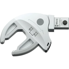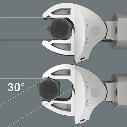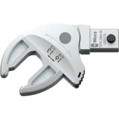 Self-setting insert spanner, for hexagon screw heads and bolts, for torque wrenches from the Click-Torque X and XP series with 9x12 mm mounting. Covers all metric and imperial dimensions in the respective field of application. With its continuous and parallel jaws, the tool replaces several single spanner sizes. The required size is automatically and continuously set when attaching the tool to the hexagon bolt or screw. The integrated lever mechanism securely clamps the hexagon screw or bolt between the jaws, which significantly reduces the risk of slippage or damage. The ratchet feature ensures fast and consistent screwdriving without removing the tool. By using the corner-width rectangular prisms, a return angle of only 30° can be achieved.