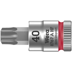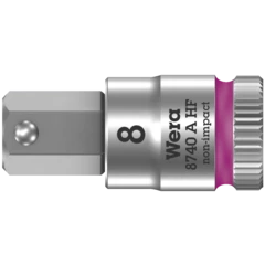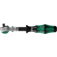 Zyklop ratchet with 1/4" drive. The fine toothing with 72 teeth allows for a low return angle of 5°. The ratchet head swivels freely and can be locked in any position using the slide switch on both sides. Unproblematic working with plenty of hand space even in very narrow or difficult-to-reach installation situations. The pre-defined positions at 0°, 15° and 90° to the left and right guarantee safe working without the ratchet head slipping. In the 0° position, the ratchet with adapter and bit can be used like a conventional screwdriver. The flywheel design helps accelerate the screwdriving process. The rotationally symmetrical design of the Kraftform handle and the fast-rotating sleeve support rapid turning. Thanks to the shape of the Kraftform handle being perfectly adapted to the hand, hand injuries such as blisters and calluses are avoided. The hard materials used for the handle guarantee quick hand switching without the risk of the skin "sticking" to the handle. The softer, "non-slip" zones offer transmission of high forces without loss. For 1/4" square head socket wrench inserts as well as 1/4" connectors with square head drive, with ball lock.