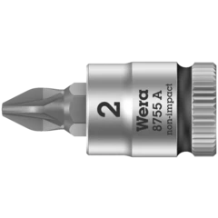 The ratchet can be used as a conventional screwdriver in the 0° position by attaching a bitholding adaptor and a bit.