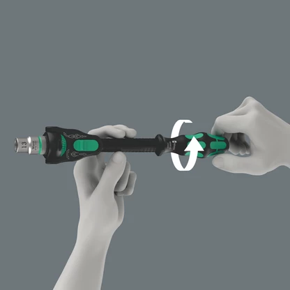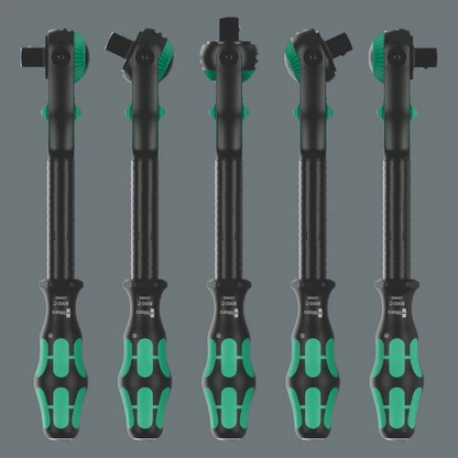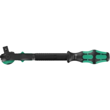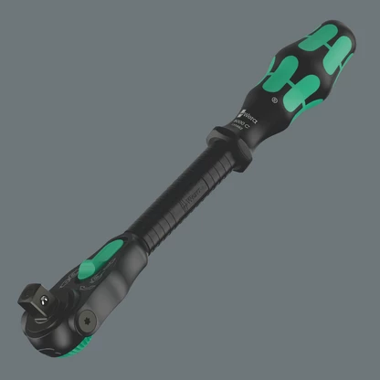 Zyklop ratchet with 1/2" drive. Premium and robust matte-black chrome-plated surface. The fine toothing with 72 teeth allows for a low return angle of 5°. The ratchet head swivels freely and can be locked in any position using the slide switch on both sides. Unproblematic working with plenty of hand space even in very narrow or difficul05500686025 t-to-reach installation situations. The pre-defined positions at 0°, 15° and 90° to the left and right guarantee safe working without the ratchet head slipping. In the 0° position, the ratchet with adapter and bit can be used like a conventional screwdriver. The flywheel design helps accelerate the screwdriving process. The rotationally symmetrical design of the Kraftform handle and the fast-rotating sleeve support rapid turning. Thanks to the shape of the Kraftform handle being perfectly adapted to the hand, hand injuries such as blisters and calluses are avoided. The hard materials used for the handle guarantee quick hand switching without the risk of the skin "sticking" to the handle. The softer, "non-slip" zones offer transmission of high forces without loss. For 1/2" square head sockets as well as 1/2" connectors with square head drive, with ball lock.
