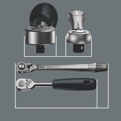 Due to the ever-more confined working environment, space is becoming more and more an issue for the application of ratchets. Our product developers therefore intensively occupied themselves with the issue of confined working spaces, and Wera has now solved this problem. The extremely slim and robust Zyklop Metal ratchet with a long lever was what emerged. When the change in direction needs to be quick, the Zyklop Metal Switch ratchet is the right tool. When the socket must not get lost and a coincidental change of direction has to be avoided at all cost, the Zyklop Metal Push is the correct choice.