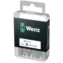 Tough Wera bits for Phillips screws, for universal use. 1/4" hexagonal, suitable for holding tools as per DIN ISO 1173-D 6.3.