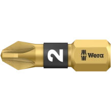 Bits for Pozidriv* screws with tiny diamond particles on the bit tip. This ensures a secure fit of the bit in the screw, reduces the contact pressure required and lowers the risk of slipping. Comes with Torsion zone where kinetic energy is diverted from peak loads . This greatly extends the product service life; ¼" hexagon, suitable for holders as per DIN ISO 1173-D 6.3. * Pozidriv = registered trademark of European Industrial Service Ltd.
