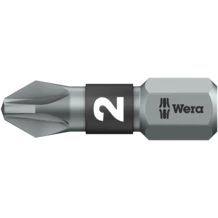 BiTorsion bits for Pozidriv* screws with torsion zone into which kinetic energy is dissipated during peak loads. This significantly increases the product life. Extra-hard design. 1/4" hexagonal, suitable for holding tools as per DIN ISO 1173-D 6.3. * Pozidriv = registered trademark of the company European Industrial Service Ltd.