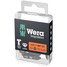 High quality bits for Pozidriv* screws. The Impaktor technology offers an above-average service life even under extreme circumstances. Enhanced friction resistance, thanks to the rough diamond-particle coating on the bit tip, prevents any slipping out of the screw head. Particularly suitable for use with customary impact drivers. ¼" hexagon, suitable for holders as per DIN ISO 1173-D 6.3. * Pozidriv = registered trademark of European Industrial Service Ltd.