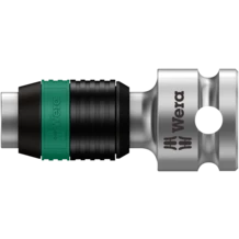 Connector from square head to hexagonal. For 1/4" hexagon bits as per DIN ISO 1173-C 6.3 and E 6.3 and Wera connection series 1 and 4. With quick-release chuck.
