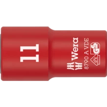 1/4" VDE sockets with increased safety thanks to the yellow insulation core, which becomes visible if the outer red VDE insulation layer is damaged. Individually tested tools as per IEC 60900 at 10,000 V for safe working at the approved voltage of 1,000 V.