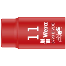 3/8" VDE sockets with increased safety through yellow insulation core, which becomes visible in case of damage to the outer red VDE insulation layer. Individually tested tool as per IEC 60900 at 10,000V for safe working at the approved voltage of 1,000V.