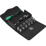 The Wera manual and machine socket (ISO 2725 part 3) can be used in manual and machine operations. With Take it easy tool finder with colour coding by size - for quick and easy identification of the required tool. Slip-proof for easy grip even with oily hands. With ball stop groove. For external hexagon screws and bolts. Made of matte chrome-plated chrome-vanadium.