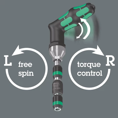 - Avoids annoying re-positioning when tightening screws with Wera torque screwdrivers with pistol handle