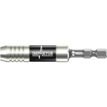 Wera Impaktor holder for the absorption of impulse peaks. Particular torsion effect thanks to the double-torsion spring. The retaining ring ensures an optimum fit of the tool in the holder. The magnet provides for additional fixing of the bit and screw. The Impaktor stainless holder with retaining ring and magnet meets the extremely dynamic demands by doing without any small, mechanical parts that are often susceptible. Used mostly for industrial assembly applications such as e.g. with screwdriving robots. Output: suitable for bits with ¼" hexagon head drive as per DIN ISO 1173-C 6.3. Drive: 1/4" hexagon, suitable for power screwdrivers with take-up as per DIN ISO 1173-F 6.3.