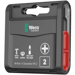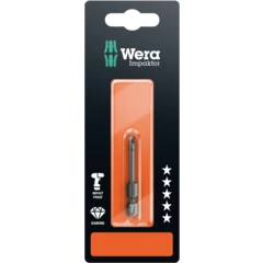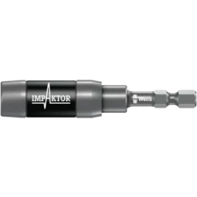 Wera Impaktor holder for the absorption of impulse peaks. Particular torsion effect thanks to the double-torsion spring. The Impaktor holder additionally holds long and heavy screws extremely securely with its ring magnet. This enables rapid and dependable positioning of the screw. Should, situation-related, the magnet not be desired e.g. when working with metal, it can be removed from the screwdriving zone and thereby be neutralised. Used mostly for manual power tool applications. Output: suitable for bits with ¼" hexagon head drive as per DIN ISO 1173-C 6.3. Drive: 1/4" hexagon, suitable for power screwdrivers with take-up as per DIN ISO 1173-F 6.3.