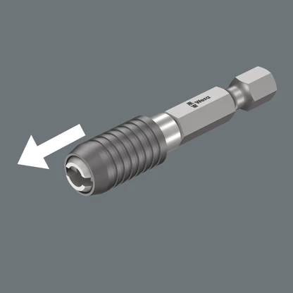 For a firm, wobble-free connection between holder and bit with quick-release action. Simply push sleeve forward to change bits. The magnetic design enables simplified positioning of the screw.