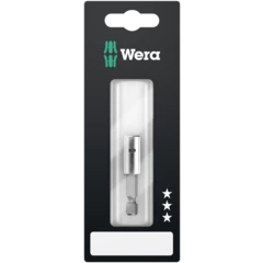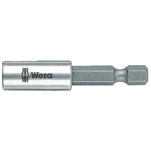 Universal holder for the take-up of bits with ¼" hex head drive as per DIN ISO 1173-C 6.3. Stainless sleeve for special corrosion protection. The particularly strong retaining ring ensures an optimum fixing of the tool in the holder. The especially strong permanent magnet makes sure that the bits are held absolutely securely. ¼" hexagon, suitable for holders as per DIN ISO 1173-F 6.3.