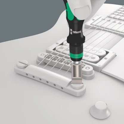 - String crank for guitars: With the 1/4" hexagon, the string crank can be inserted in the Kraftform 815 R bitholding screwdriver included in the set. The ergonomic shape of the handle makes it sit comfortably in the hand; the power can be charged precisely. Fits all guitar tuners.