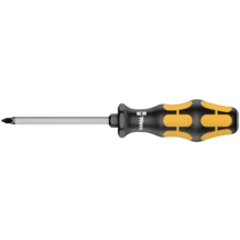 Wera Chiseldriver for fastening, chiselling and loosening seized screws. Multi-component Kraftfrom handle for fast and low-fatigue working. Kraftform Plus: hard gripping zones for high working speeds whereas soft zones ensure high torque transfer. A hexagon blade out of high quality bit material that extends right through the blade ensures full transfer of force, even when struck with a hammer. The ductile tempered material prevents the blade from splintering or breaking. Comes with an impact cap for durability and reduced risk of splintering. The square take-up in the impact cap enables higher torque transfer when screwdriving with the T-handle, Zyklop ratchet or Mini ratchet. The Wera Black Point tip and a complex hardening process ensure a long service life of the tip, enhanced corrosion protection and an exact fit. The hexagonal anti-roll feature prevents any bothersome rolling away at the workplace and handle markings make for simplified finding and sorting of the tool.