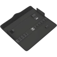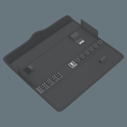 The textile box features a fleece zone at the back. Using the provided self-adhesive hook and loop fastener strips, the textile box can be attached to the Wera 2go components. Or to the wall, shelf or workshop trolley.
