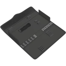 The textile box features a fleece zone at the back. Using the provided self-adhesive hook and loop fastener strips, the textile box can be attached to the Wera 2go components. Or to the wall, shelf or workshop trolley.