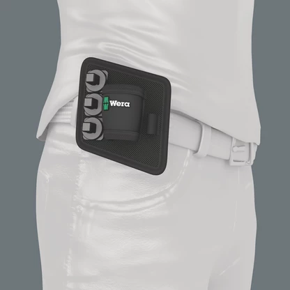 The textile holster features a fleece zone at the back. Using the provided self-adhesive hook and loop fastener strips, the holster can be attached to the Wera 2go components. Or to the wall, shelf or workshop trolley.