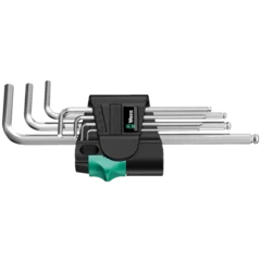 High quality L-key set for imperial hexagonal socket screws in a practical clip fastener out of wear-resistant material, enabling secure storage of the L-keys as well as simple removal. Hex-Plus profile: offers a larger contact surface within the screw head. This reduces the notching effects to a minimum and almost completely eliminates the risk of destroying the screw recess. The ball-end on the long arm allows for reliable working even in difficult installation situations. The BlackLaser surface treatment provides outstanding surface protection, even against corrosion, and a long service life. The tools are quickly to hand thanks to the laser-engraved and thereby wear-resistant size markings on the L-keys.
