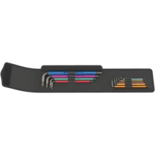 L-keys with plastic sleeve (SPKL) made of circular, easy-grip material. The sleeve makes working comfortable even at low temperatures and is easy on the fingers. All L-keys are easily accessible due to their colour coding and size markings. The wear-free material of the clip guarantees easy removal and a secure hold of the L-keys. For hexagonal socket screws.