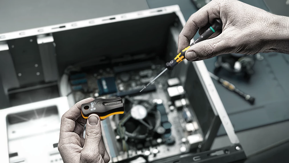 The electric surface resistance of the Wera ESD material is ≤ 109 ohm. This securely protects components against electrostatic energy and associated damage.