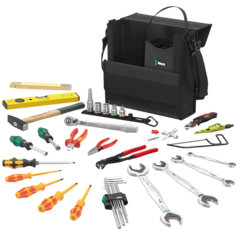 The tool set for the belt. The tool holster has 5 zones for inserting and accessing the required tools at any time. The holster has a robust construction, is made of tear-resistant material and is also suitable for use in adverse conditions. The included tools can be supplemented or exchanged individually. The holster can be worn on the hips. Ideal for mobile use at different locations.